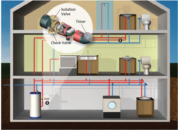 If you are building a new home or rehabilitating one, now is the time to put in a re-circulating loop! You will have no trouble installing the return loop lines and insulating